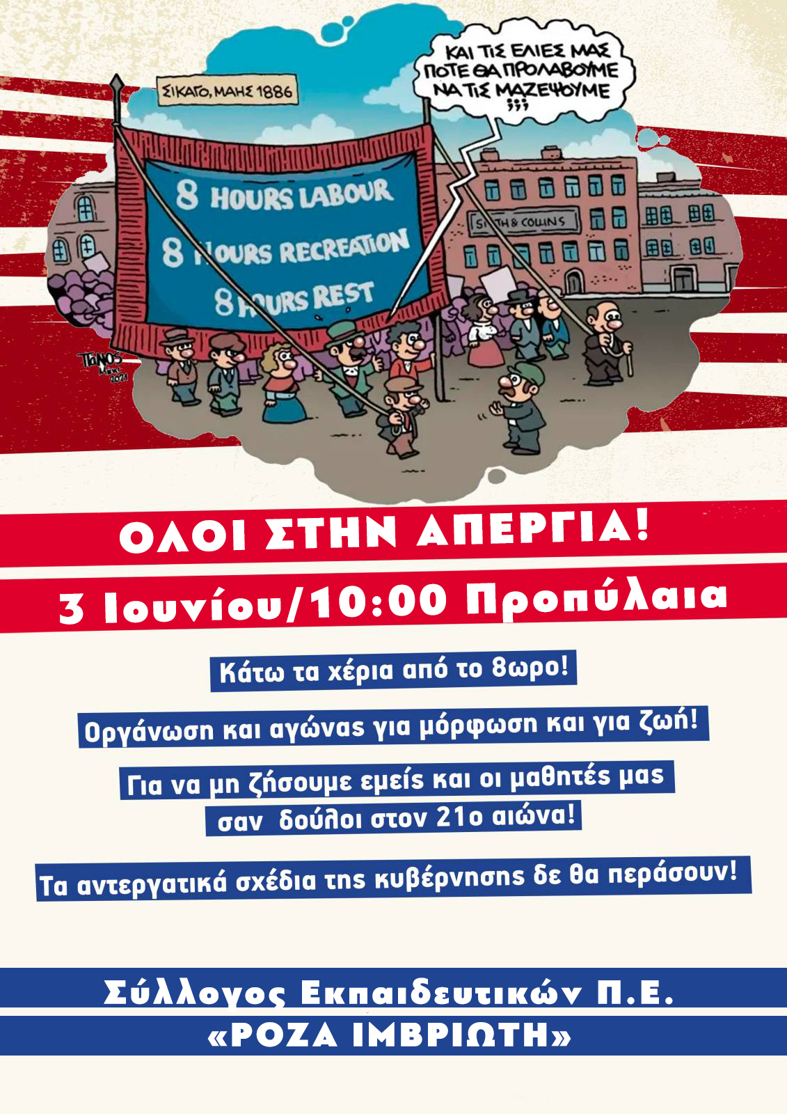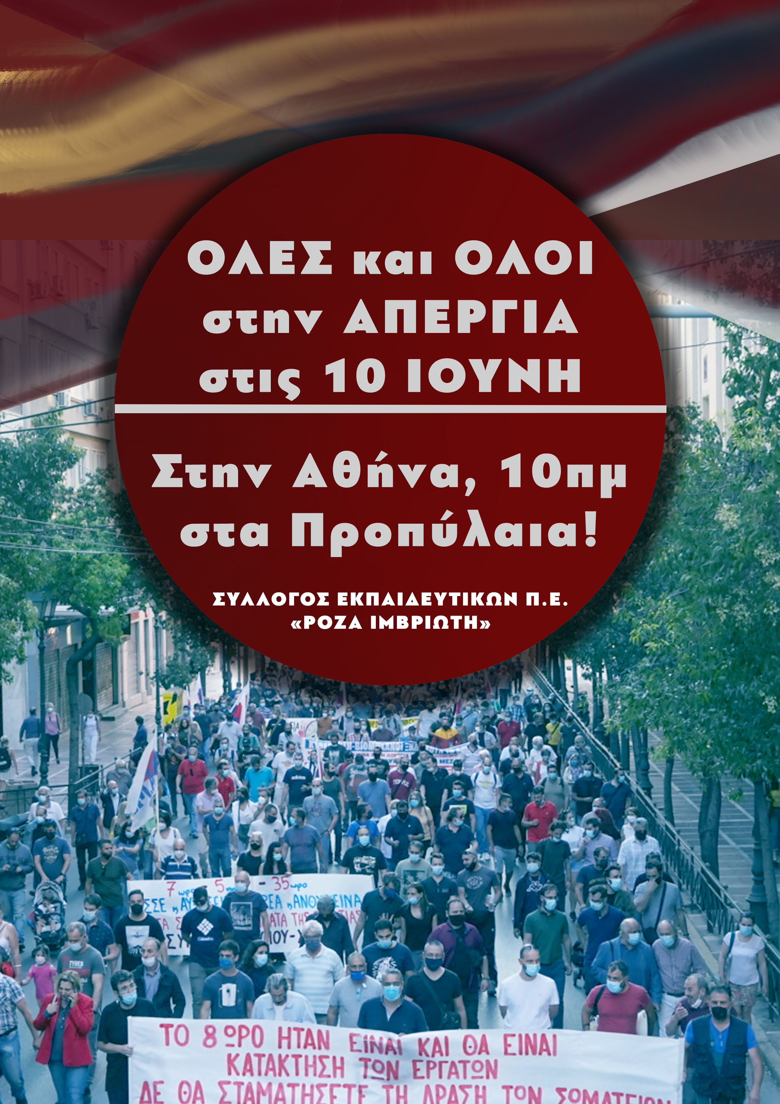 ΑΦΙΣΑ ΚΑΛΕΣΜΑ ΣΤΗΝ ΠΑΝΕΡΓΑΤΙΚΗ ΑΠΕΡΓΙΑ 3 ΙΟΥΝΙΟΥ 2021 ΚΑΙ ΣΤΗΝ ΑΠΕΡΓΙΑΚΗ ΣΥΓΚΕΝΤΡΩΣΗ 10 π.μ. ΠΡΟΠΥΛΑΙΑ!