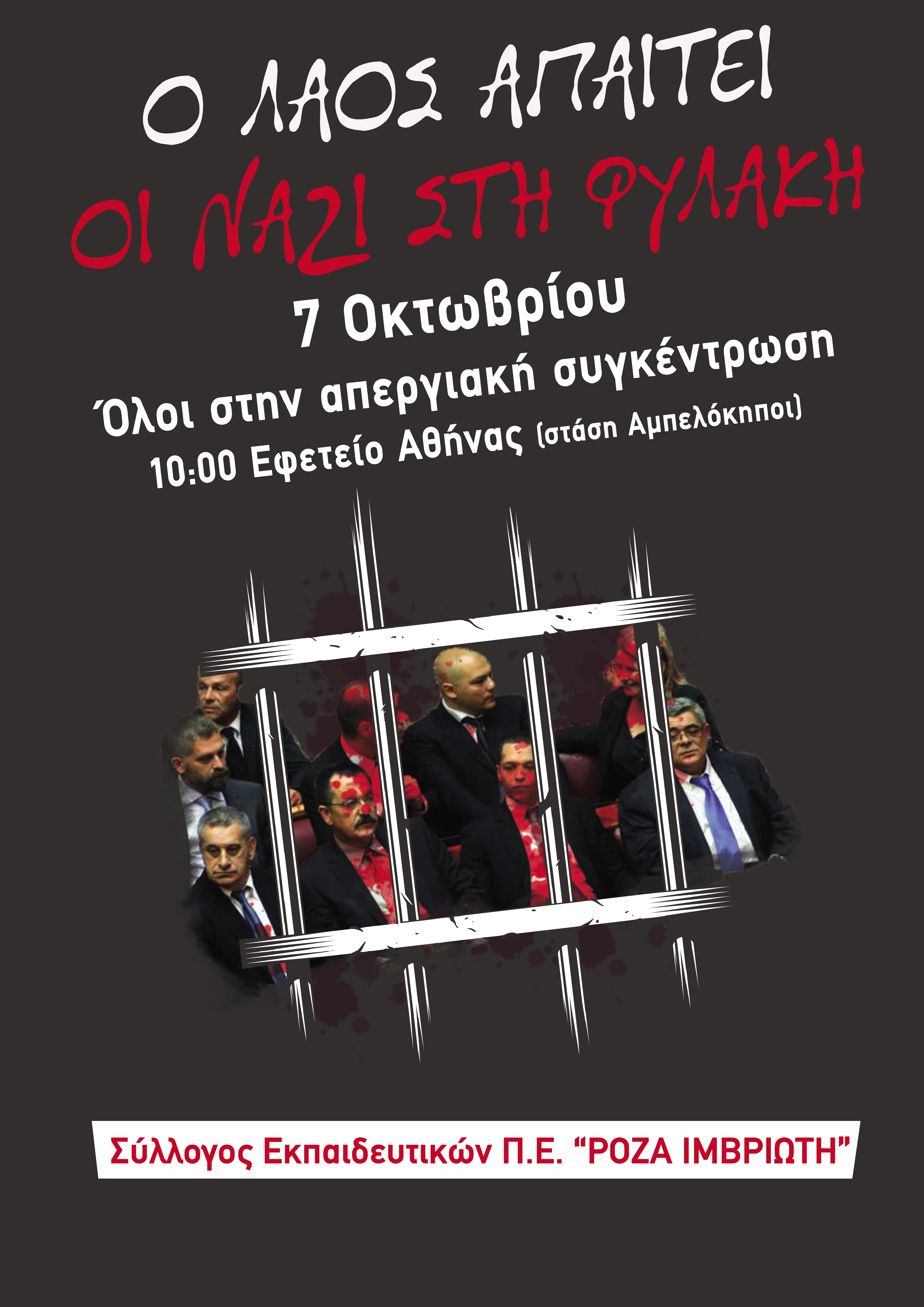 Αφίσα Κάλεσμα στη Συγκέντρωση στο Εφετείο, 7/10/2020 στις 10 π.μ. στάση Αμπελόκηποι! Ο ΛΑΟΣ ΑΠΑΙΤΕΙ ΟΙ ΝΑΖΙ ΣΤΗ ΦΥΛΑΚΗ!
