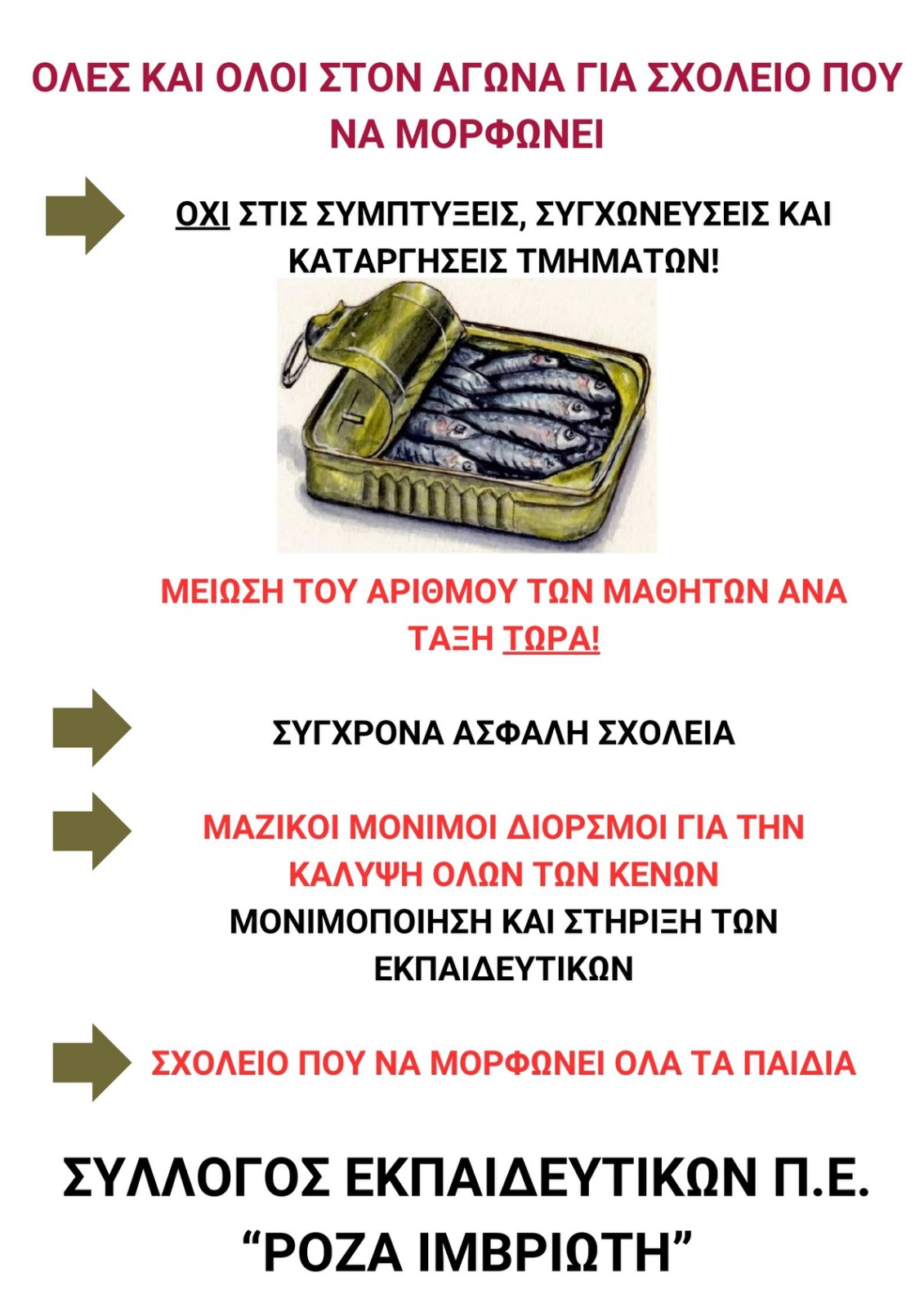 Αφίσα Συλλόγου μας "ΡΟΖΑ ΙΜΒΡΙΩΤΗ" για τις συμπτύξεις και καταργήσεις τμημάτων. Δε θα περάσουν! Όλοι στον αγώνα!