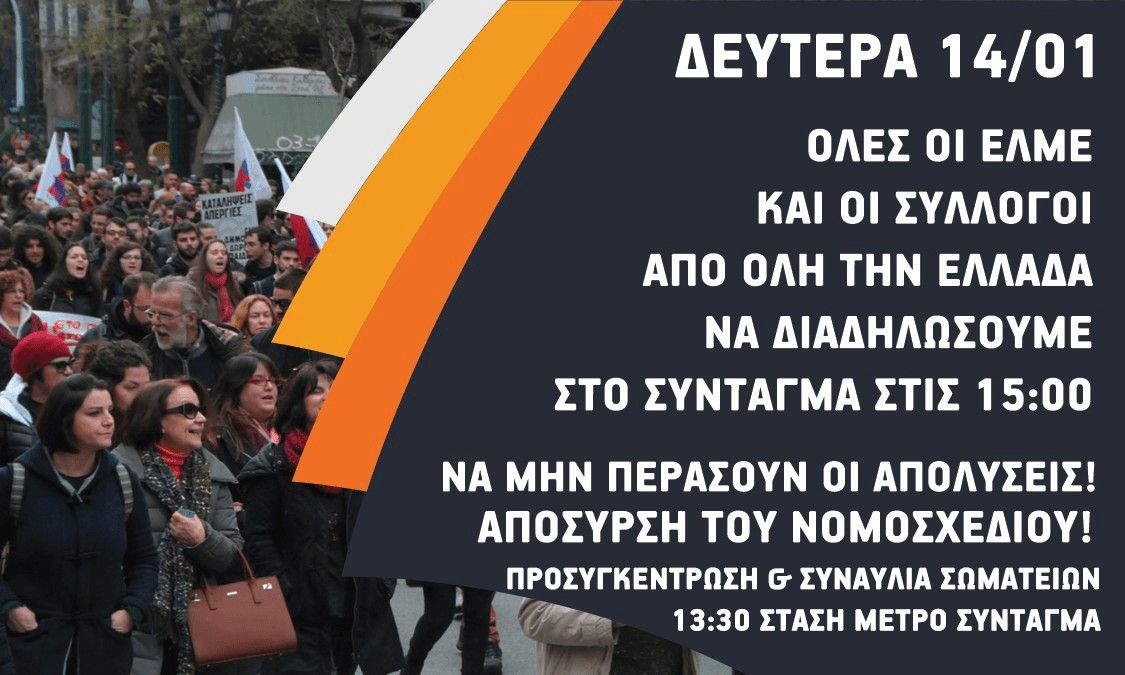 145ο Ενημ. Κλιμακώνουμε με νέα πανεκπαιδευτική πανδημοσιοϋπαλληλική ΑΠΕΡΓΙΑ την Πέμπτη 17 Γενάρη για να μην ψηφιστεί, να αποσυρθεί το νομοσχέδιο απολύσεων! 15.1.2019