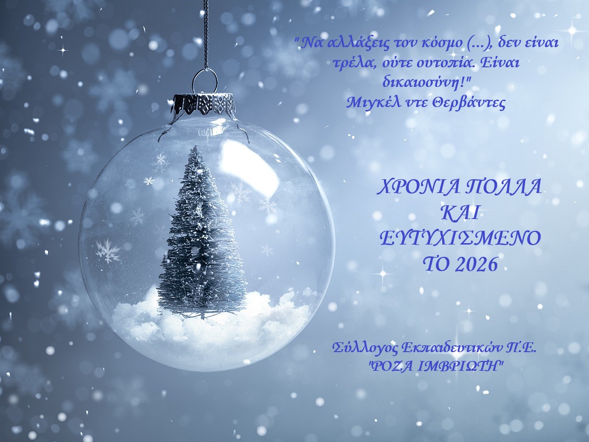 Ευχές της ΑΣΕ Συλλόγου μας ΡΟΖΑ ΙΜΒΡΙΩΤΗ σε όλους τους/τις συναδέλφους/ισσες για τις γιορτές και το 2026