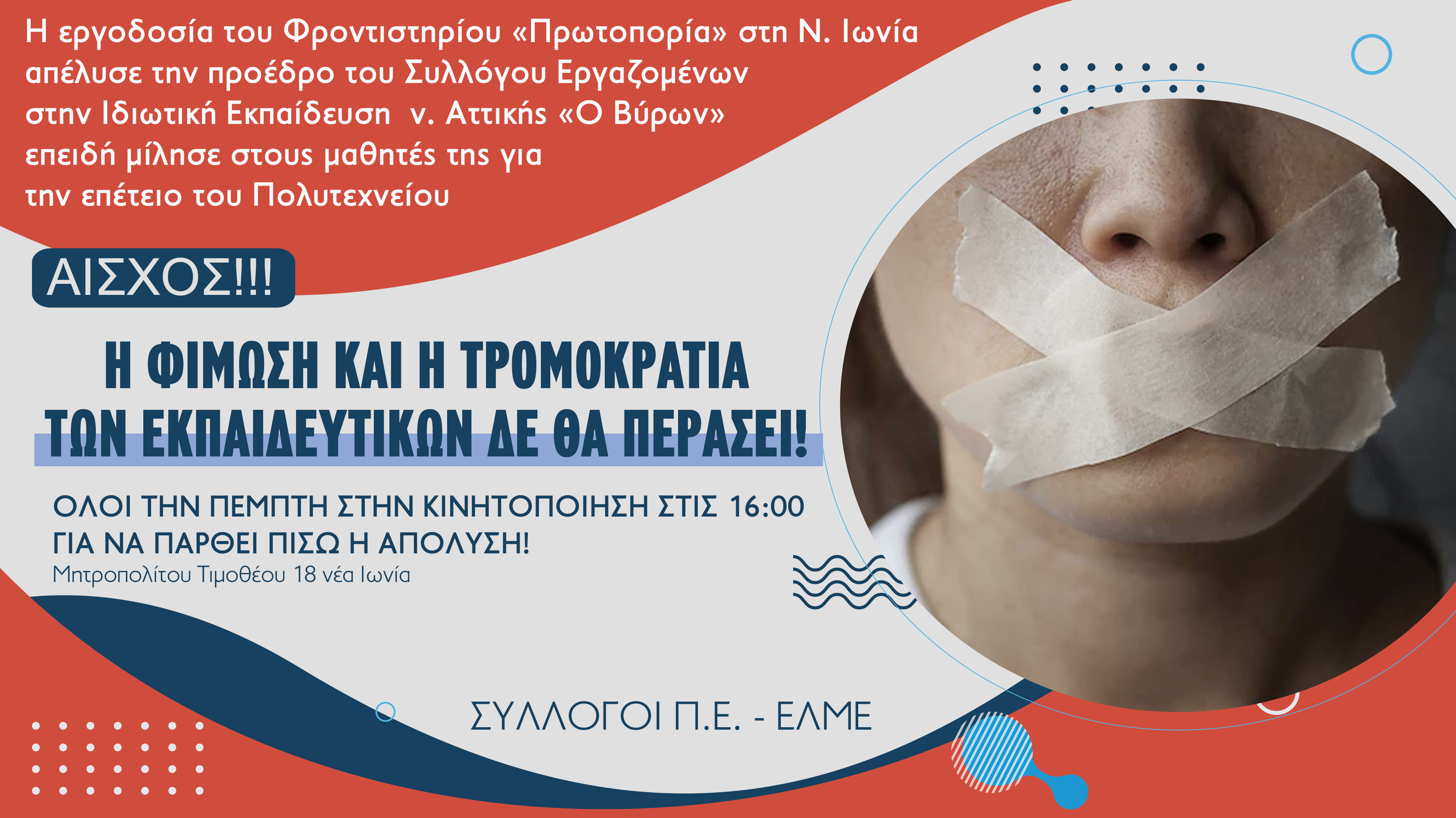 Νέα Κινητοποίηση Πέμπτη 24/11/2022 στις 4μμ για να παρθεί πίσω η απόλυση της Ελπίδας Νασιοπούλου, προέδρου Συλ Εργαζ. Ιδιωτ. Εκπ. "Ο ΒΥΡΩΝ", από το Φροντιστήριο Πρωτοπορία στη Ν. Ιωνία!