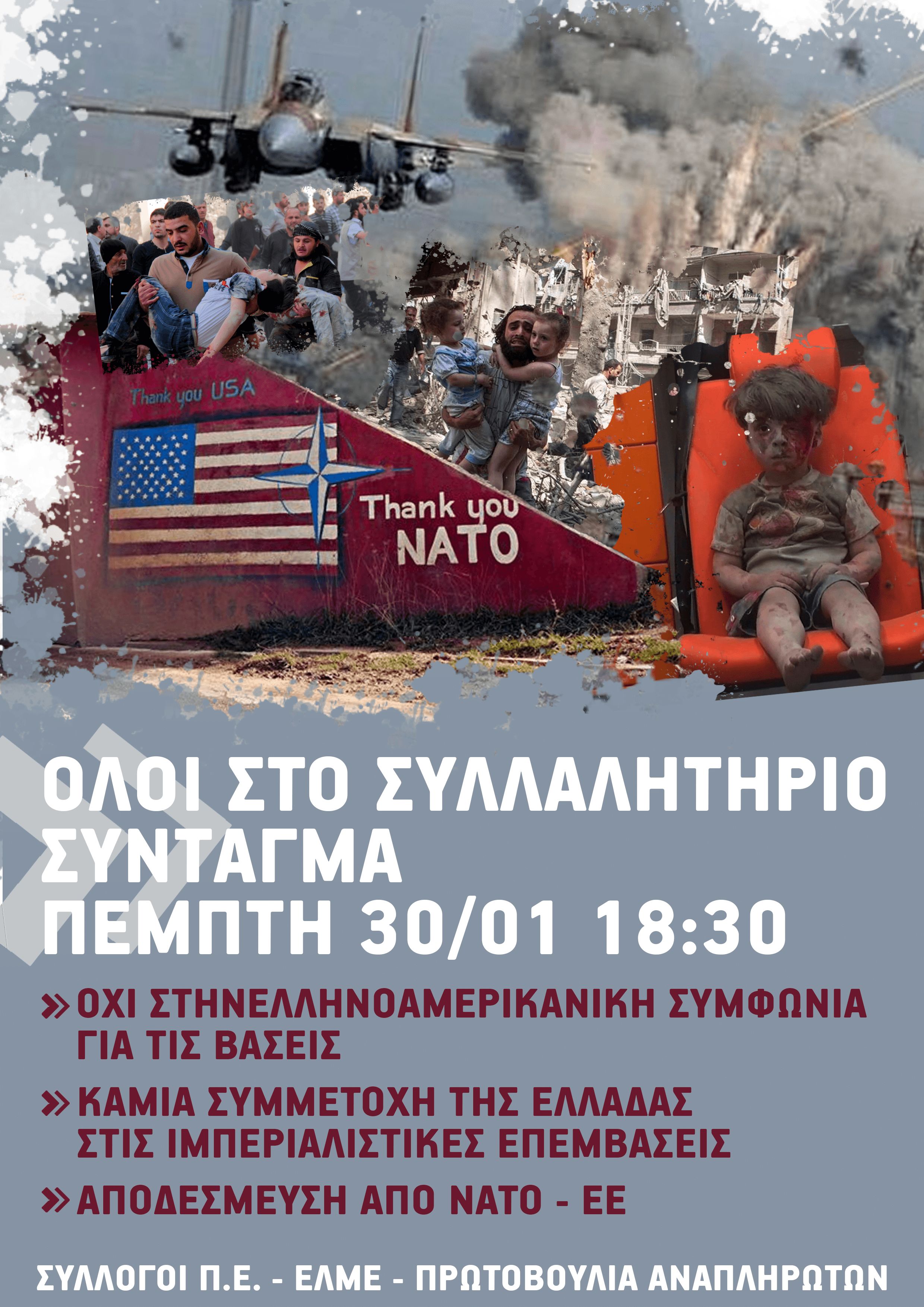 33ο Ενημ. Κάλεσμα στο Συλλαλητήριο στο Σύνταγμα 30 Γενάρη στις 6.30 μμ ΕΝΑΝΤΙΑ ΣΤΗ ΣΥΜΦΩΝΙΑ ΕΛΛΑΔΑΣ-ΗΠΑ ΓΙΑ ΤΙΣ ΒΑΣΕΙΣ! ΟΥΤΕ ΓΗ ΟΥΤΕ ΝΕΡΟ ΣΤΟΥΣ ΦΟΝΙΑΔΕΣ ΤΩΝ ΛΑΩΝ! 26.1.2020