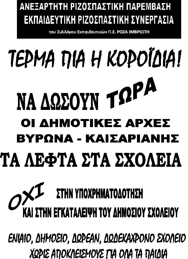 ΑΣΕ: Ανακοίνωση Αγωνιστικής Συσπείρωσης Εκπαιδευτικών (ΑΣΕ) για τις εκλογές 26/11 για νέο Δ.Σ. του Συλλόγου μας ΡΟΖΑ ΙΜΒΡΙΩΤΗ. Συνεχίζουμε πρωτοπόρα και μαχητικά! 30.11.2025