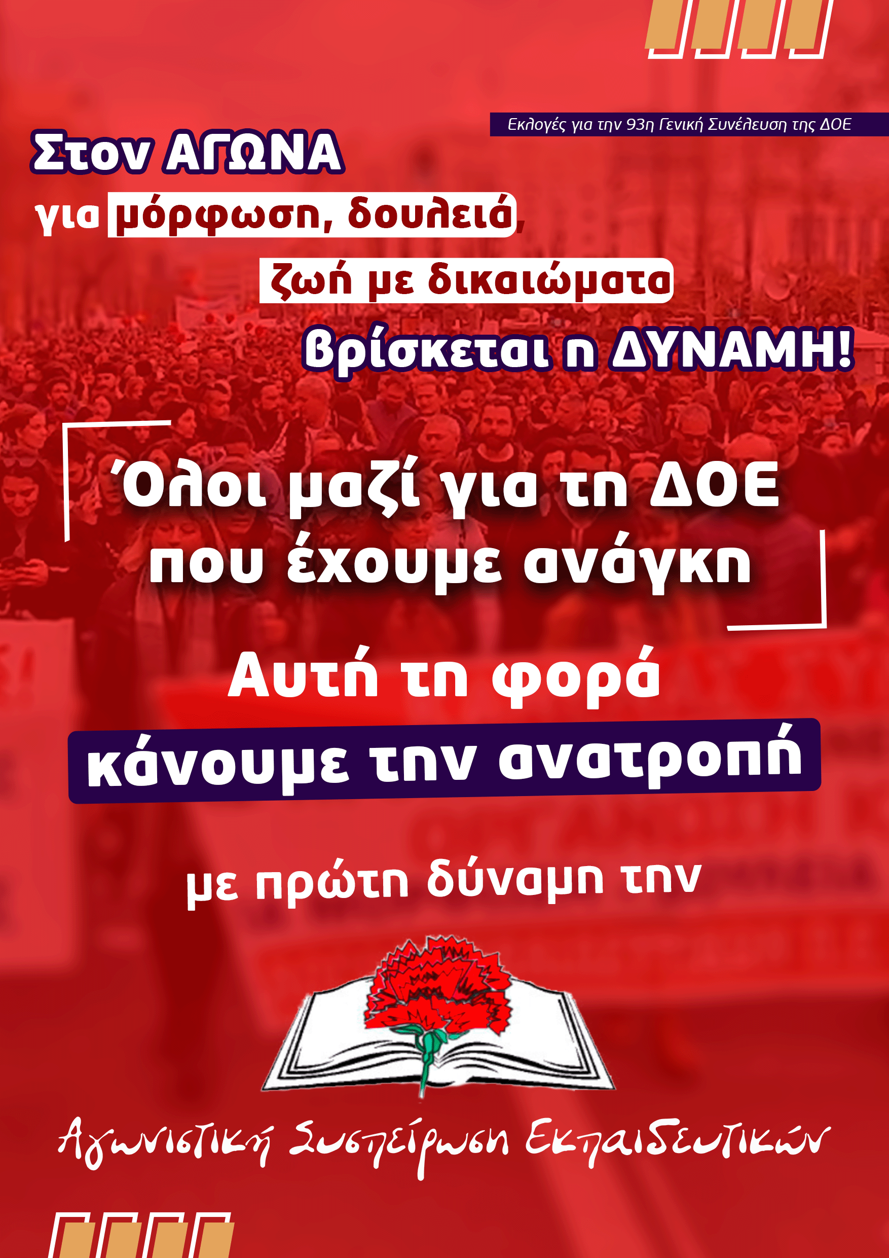 ΑΣΕ: Κάλεσμα αγώνα και συμπόρευσης προς τους χιλιάδες συναδέλφους/ισσες, μόνιμους/ες και αναπληρωτές/τριες,ενόψει της 93ης Γ.Σ. της ΔΟΕ. Έφτασε η ώρα της ΑΝΑΤΡΟΠΗΣ με την ΑΣΕ πρώτη δύναμη!