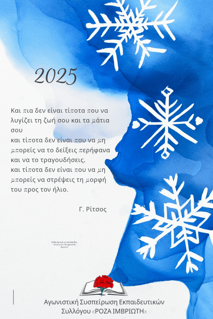Ευχές της ΑΣΕ Συλλόγου μας ΡΟΖΑ ΙΜΒΡΙΩΤΗ σε όλους τους/τις συναδέλφους/ισσες για τις γιορτές και το 2026